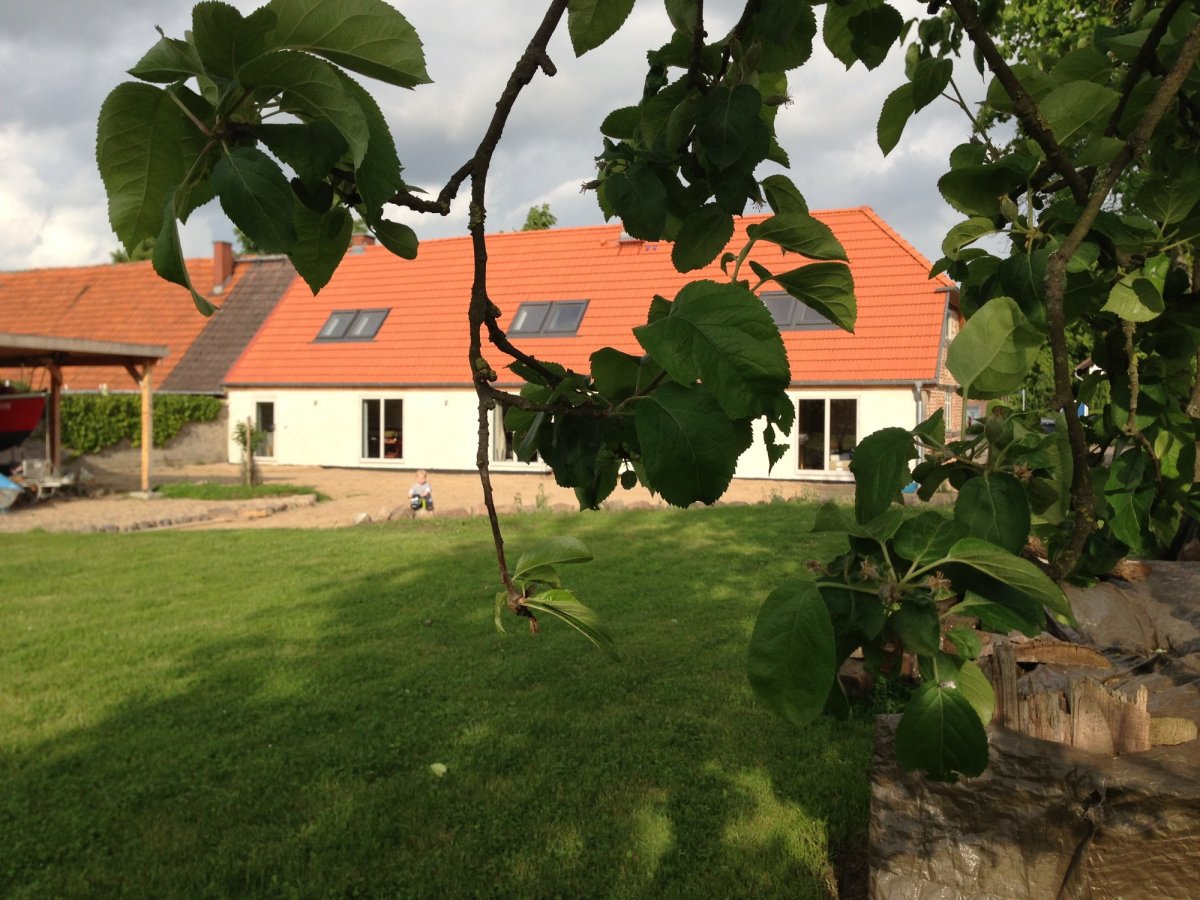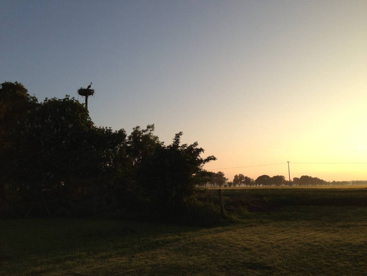 Der 2000 qm große Garten mit Obstbäumen und dem Storchennest im Hintergrund lädt zum Verweilen. Im Frühsommer können Sie das Storchenpaar bei Brutpflege und Fütterung beobachten. Kinder haben Platz zum Toben.